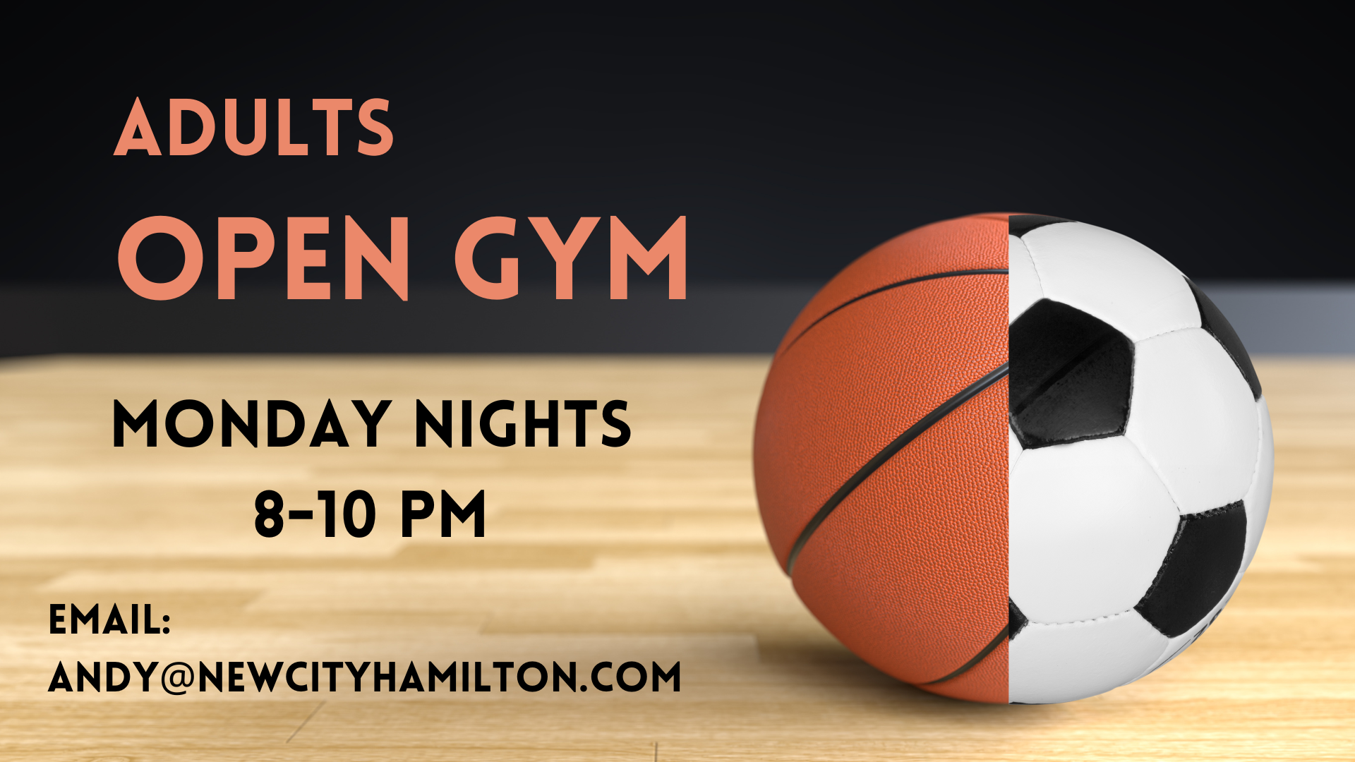Back to All Events Open Gym Monday, October 20, 2025 8:00 p.m. 10:00 p.m. New City Church 28 Rebecca Street Hamilton, ON, L8R 1B4 Canada (map) Google Calendar ICS All adults are invited to participate in Open Gym on Monday nights from 8-10 pm. They will alternate between basketball and soccer. If you have any questions, reach out to Andy Clutton, andy@newcityhamilton.com.
