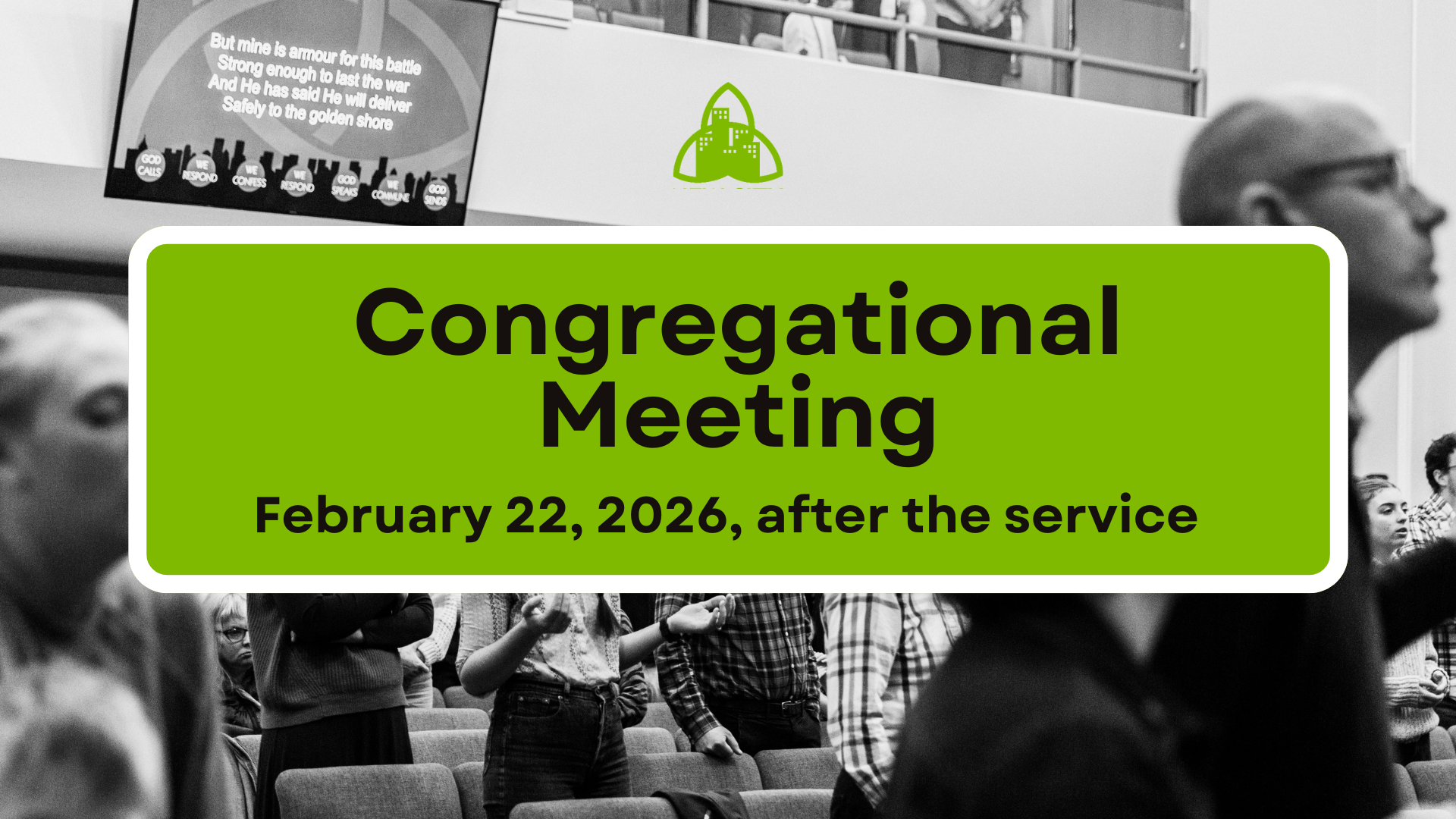 Congregational Meeting Sunday, February 22, 2026 11:30 a.m. 12:30 p.m. New City Church 28 Rebecca Street Hamilton, ON, L8R 1B4 Canada (map) Google Calendar ICS Join us on Feb 22, immediately following our worship service, for a congregational meeting. At this meeting, we will present the 2026 annual budget, review our church vision, and pray for our church.